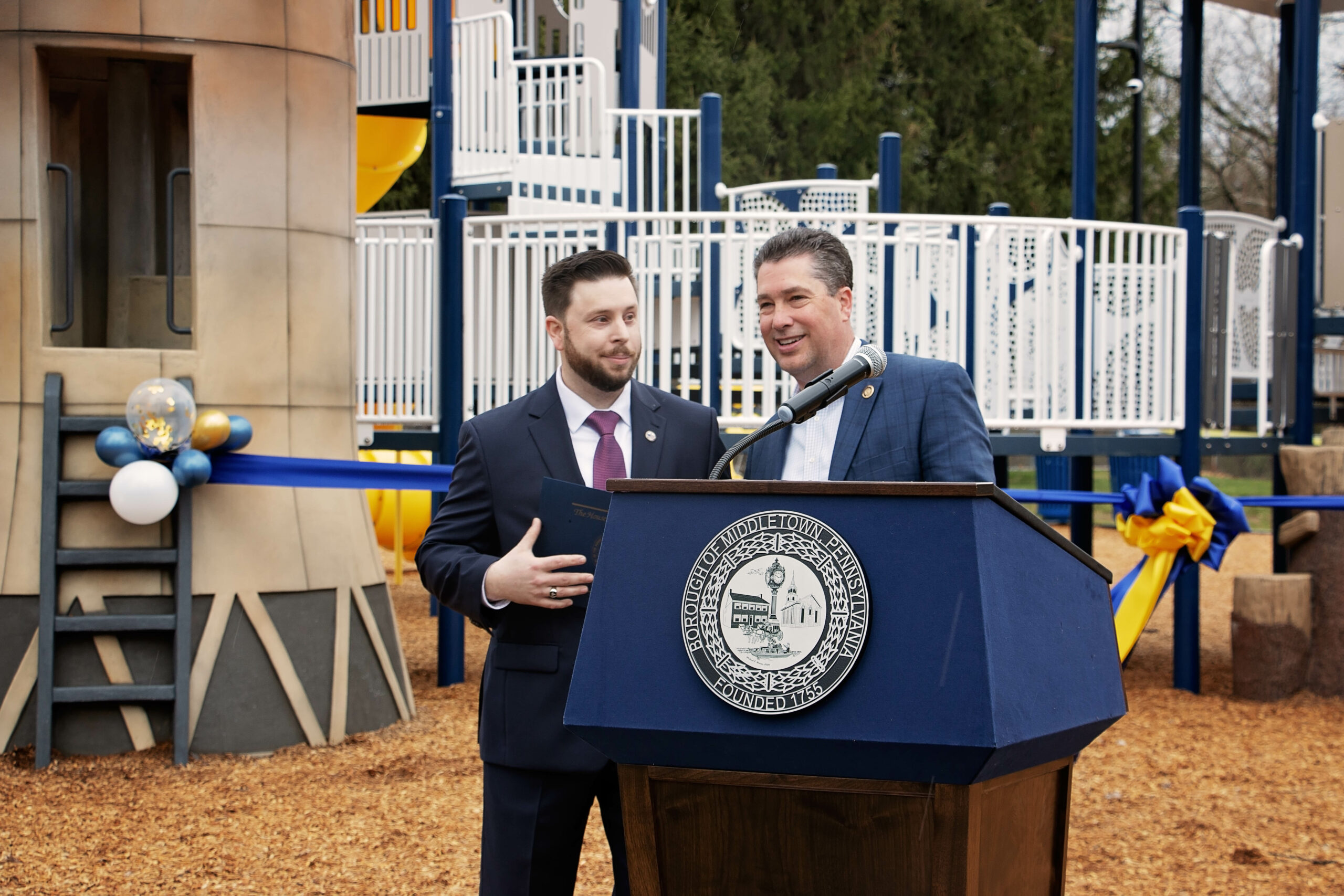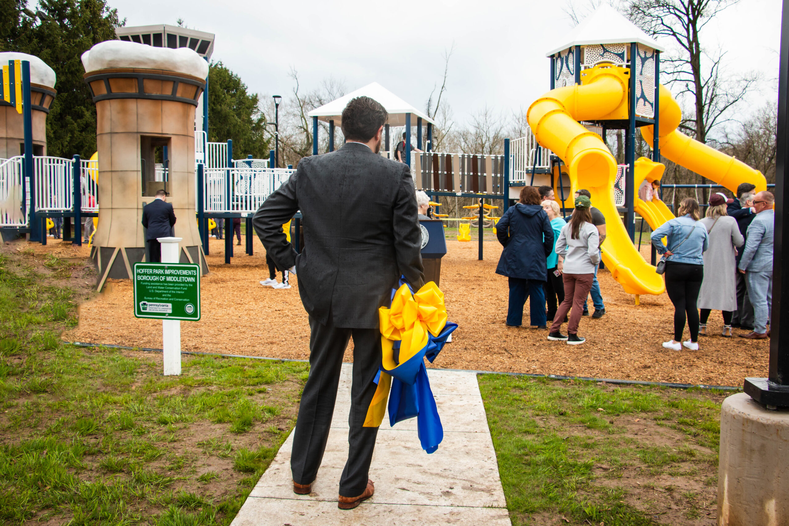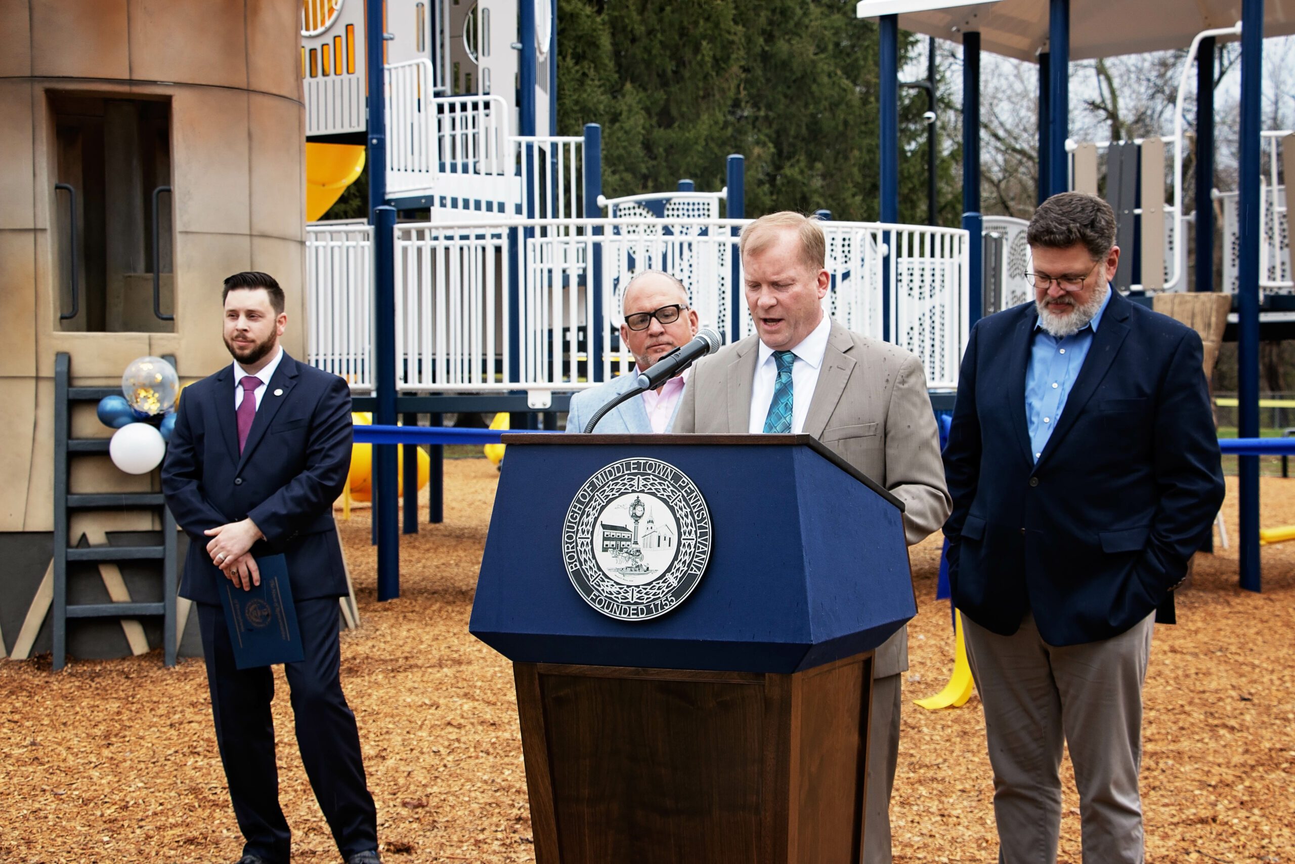 The Grand Opening of the Little Middletown Playground at Hoffer Park which occurred on April 1, 2023 was a wonderful event with many people coming to appreciate and enjoy the new playground.